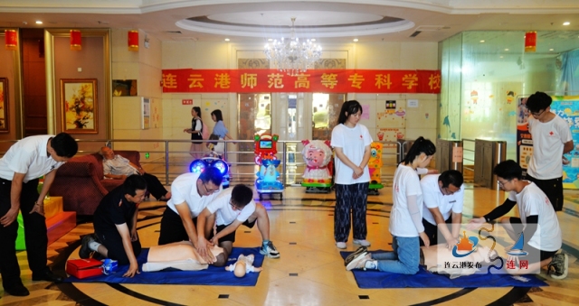2021年7月10日,連云港師范高等專科學校應急救護團隊,在海州區花果山街道恒大名都小區內開展應急救護知識宣傳及培訓。