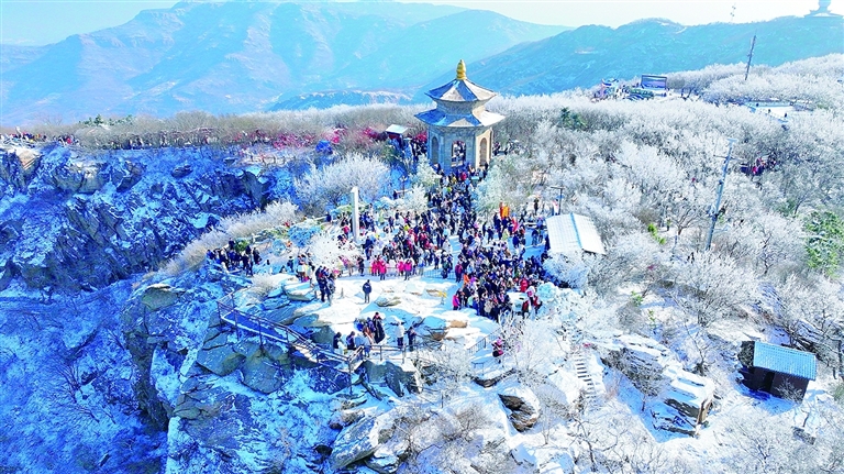昨日,花果山景區(qū)內(nèi),霧凇悄然凝結(jié),瓊枝玉葉,皓潔晶瑩,整座山巒化作夢幻的冰雪秘境,引得八方游客紛至沓來,沉醉于這冬日的山中奇景。(劉東 孫藝菡)