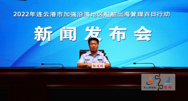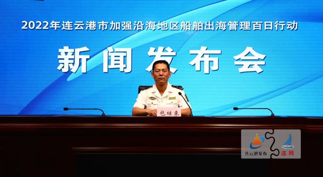 下面,我向大家介紹出席今天新聞發布會的發布人,他們是:連云港市加強沿海地區船舶出海管理百日行動領導小組辦公室主任、連云港海事局副局長包繼來同志,市公安局黨委委員、海防支隊支隊長王浩同志,市農業農村局副局長、一級調研員楊建瑞同志,市交通運輸局黨委委員、三級調研員蔣孝綱同志,連云港海事局船舶交通管理中心常務副主任劉峰同志。我是市政府新聞發言人助理閆偉,今天的發布會由我主持。
